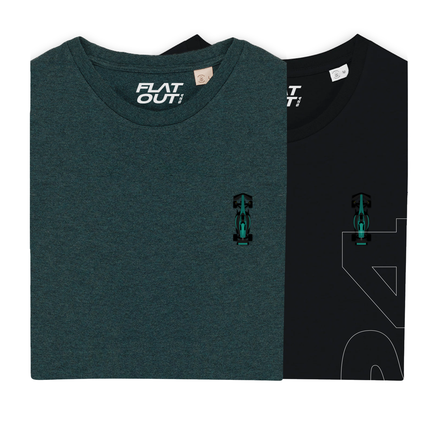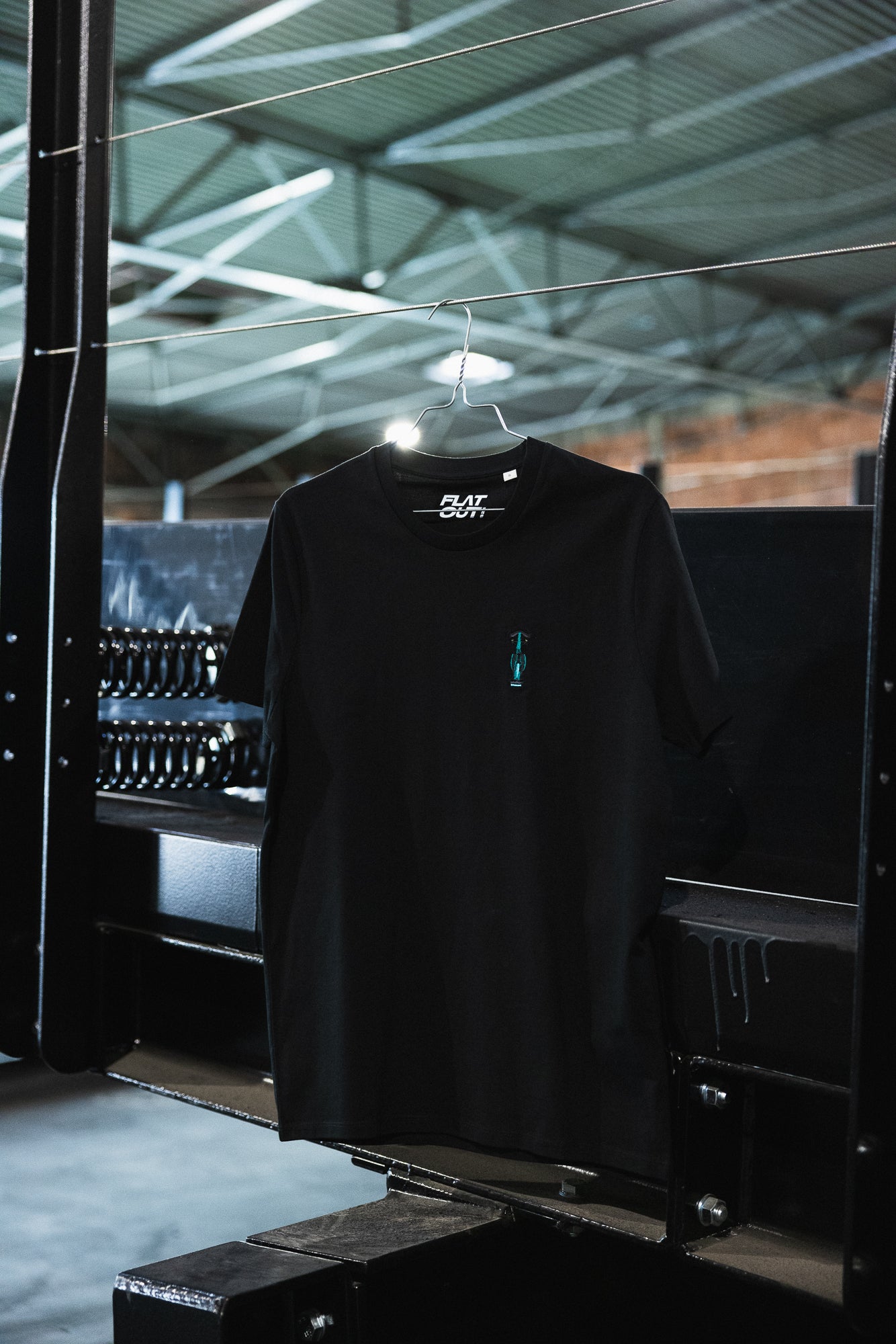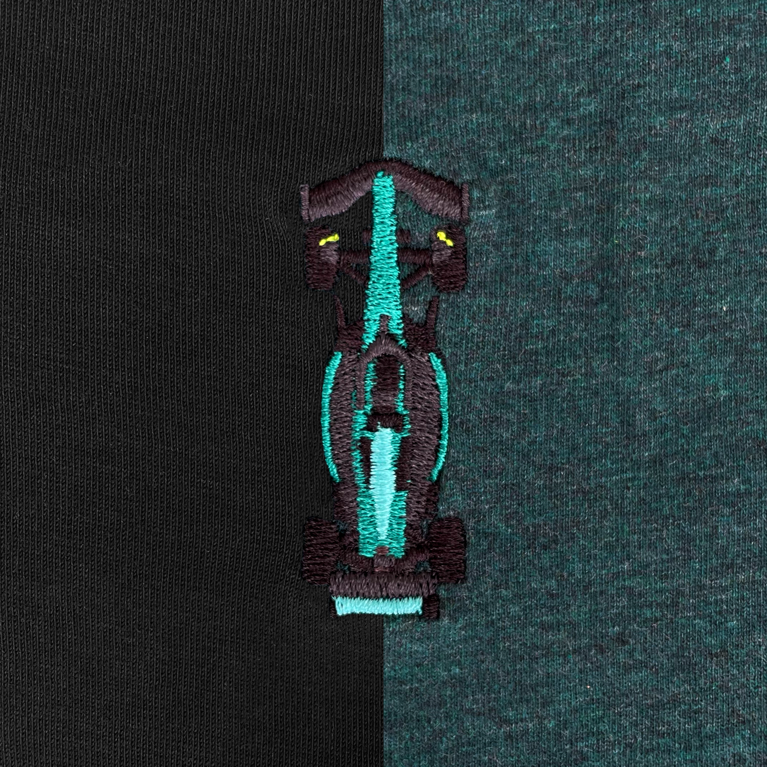 Premium T-Shirt mit hochwertiger, detaillierter Aston Martin AMR24 Stickerei.