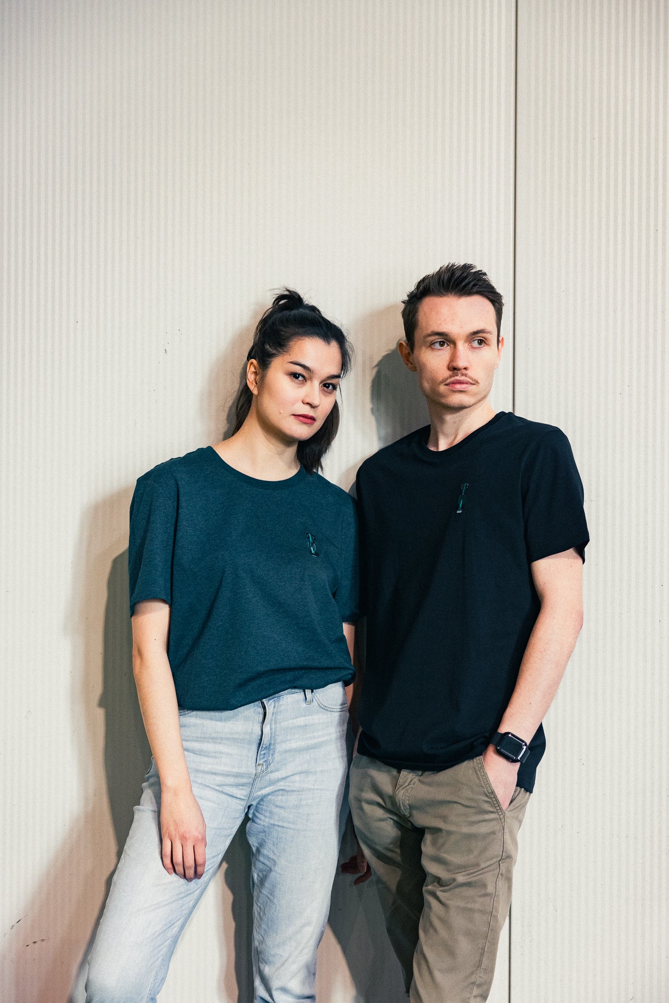Größenreferenz: Das weibliche Model auf den Fotos trägt S, das männliche Model M.